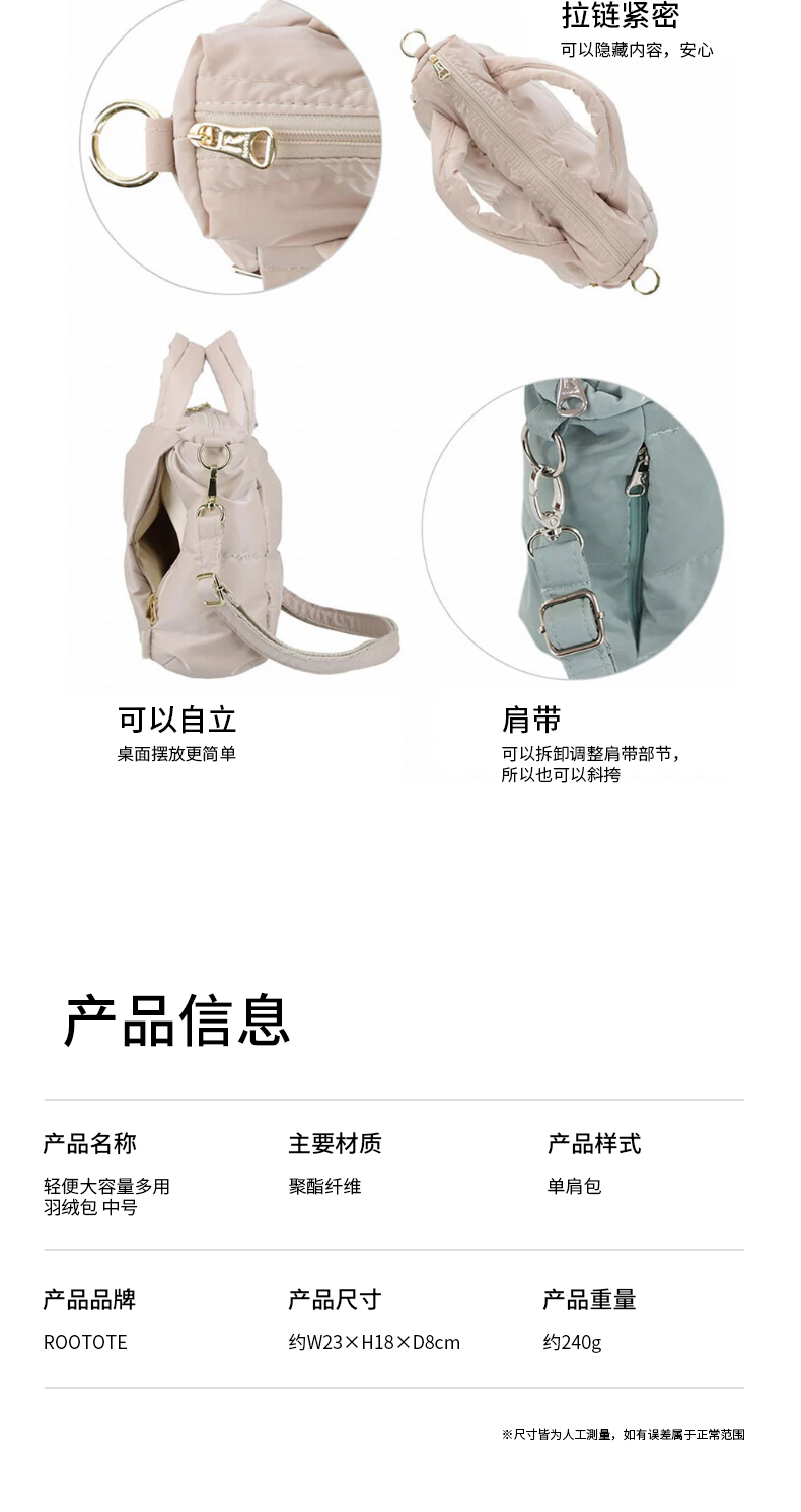 轻便大容量多用 羽绒包 中号 薄荷绿色