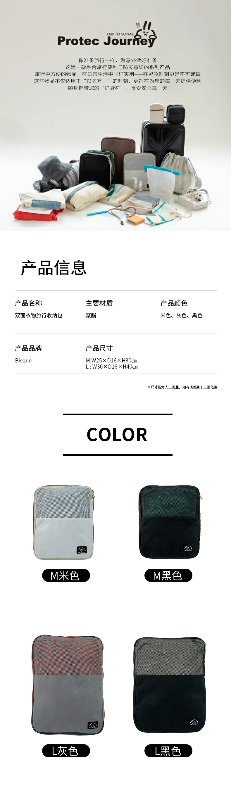 双面衣物旅行收纳包M 黑色 W25×D16×H30㎝