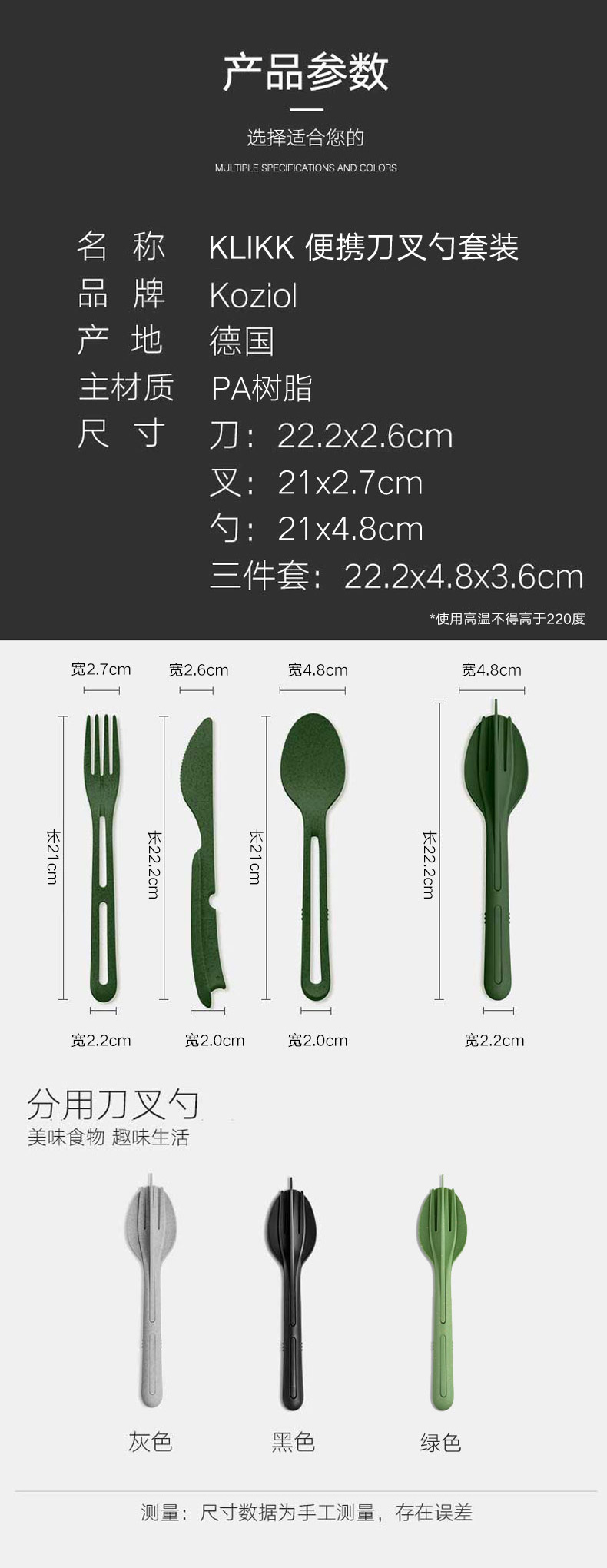 KLIKK 便携刀叉勺套装 绿色 222*48*36mm