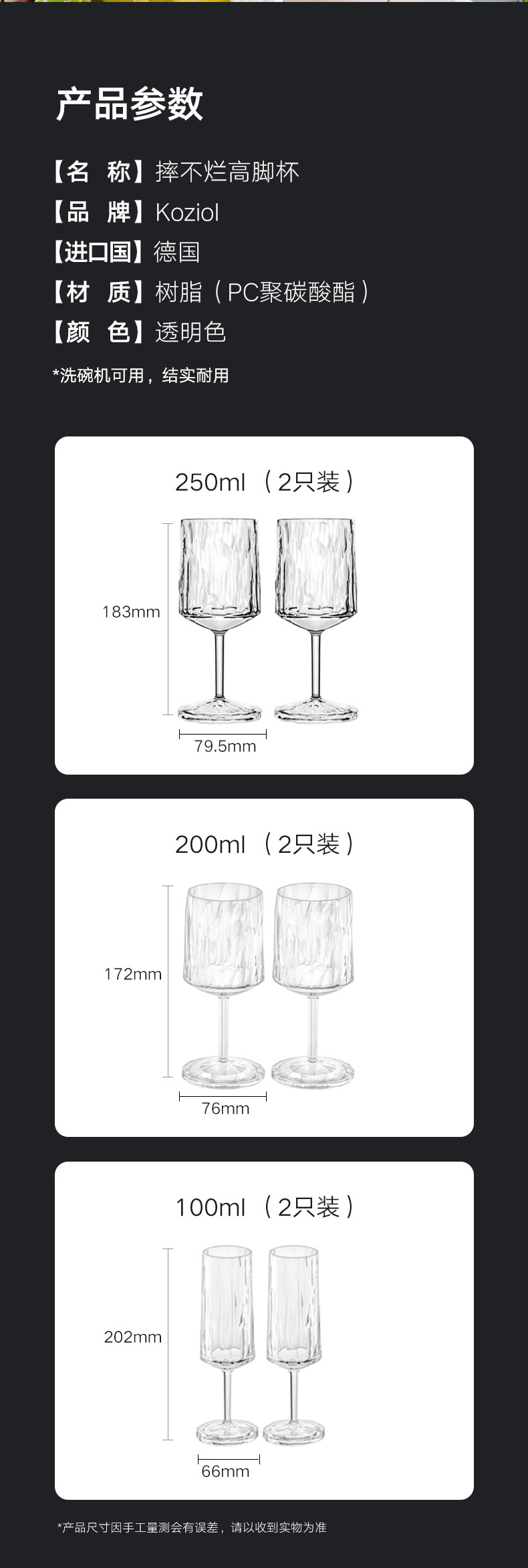 摔不烂高脚杯 250ml 79.5x79.5x183mm (2只装)