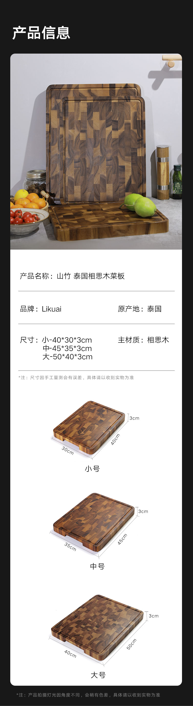 山竹 泰国相思木 菜板大号50*40*3cm