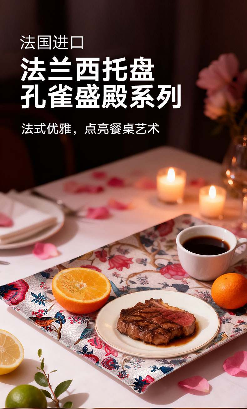 法兰西托盘 孔雀盛殿 粉色 46*36 CM