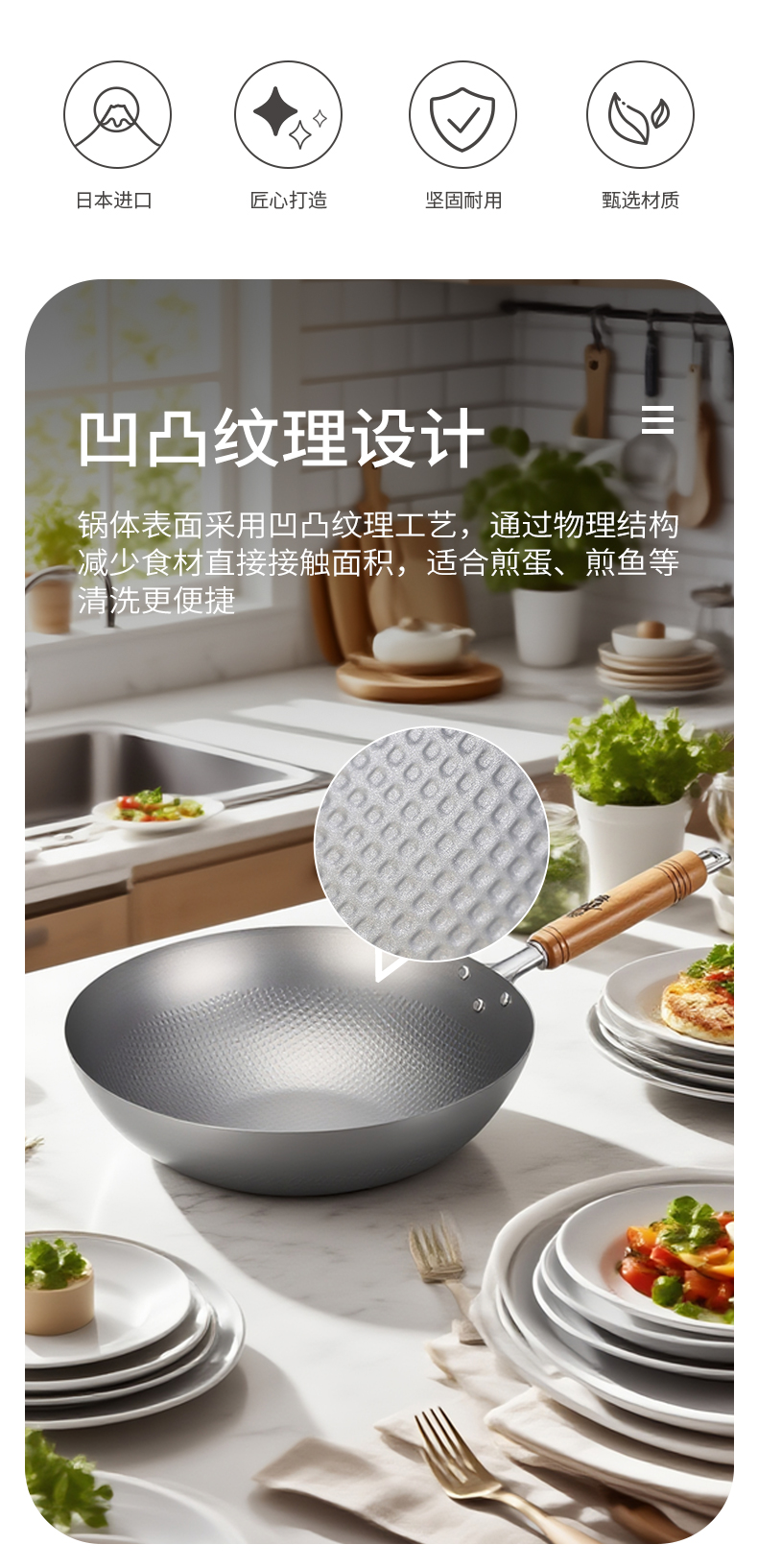 窒化凹凸纹中华炒锅 30cmx H9.5cm