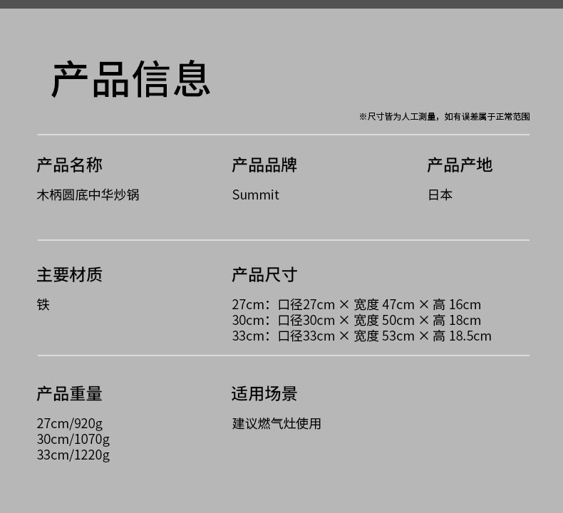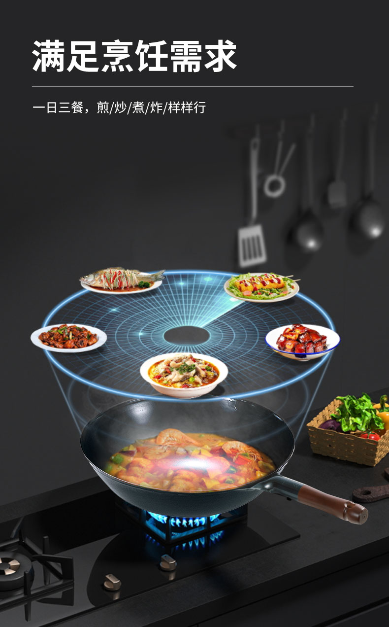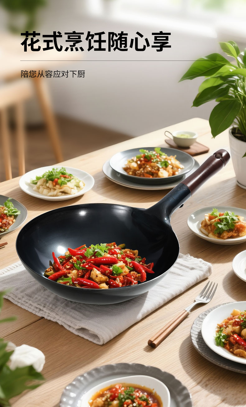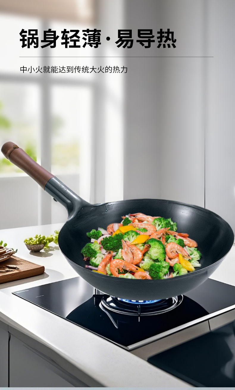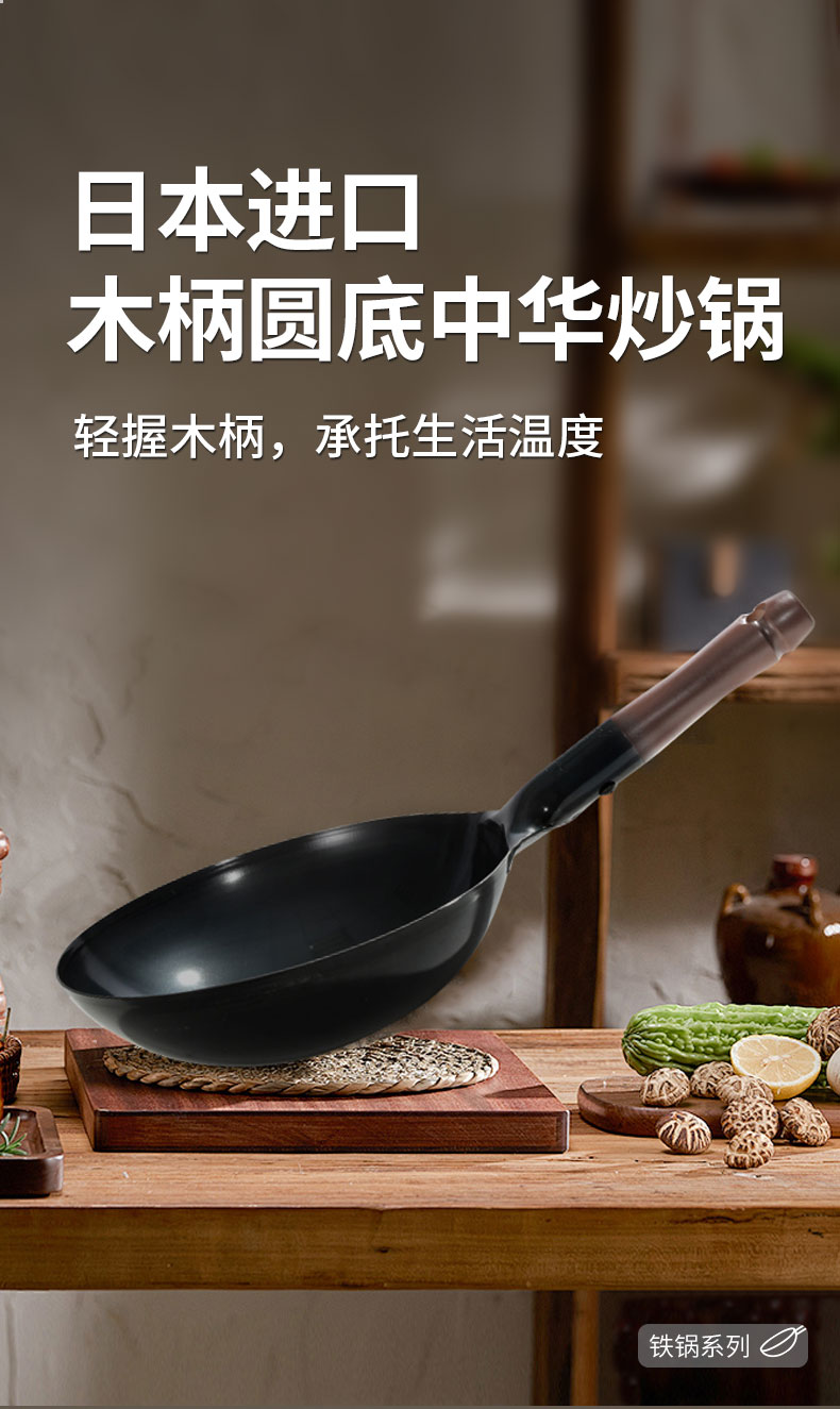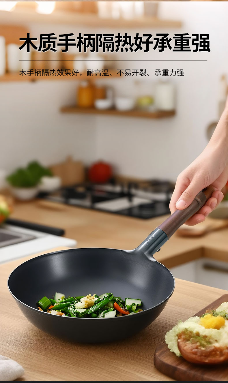 木柄圆底中华炒锅 33cmx H10cm