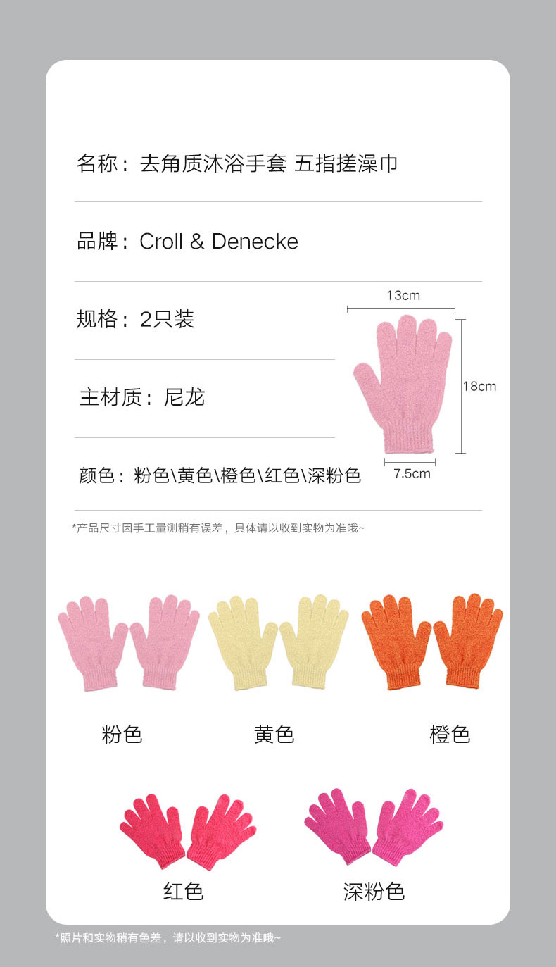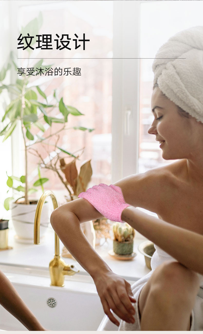 去角质沐浴手套 五指搓澡巾 红色 2只装