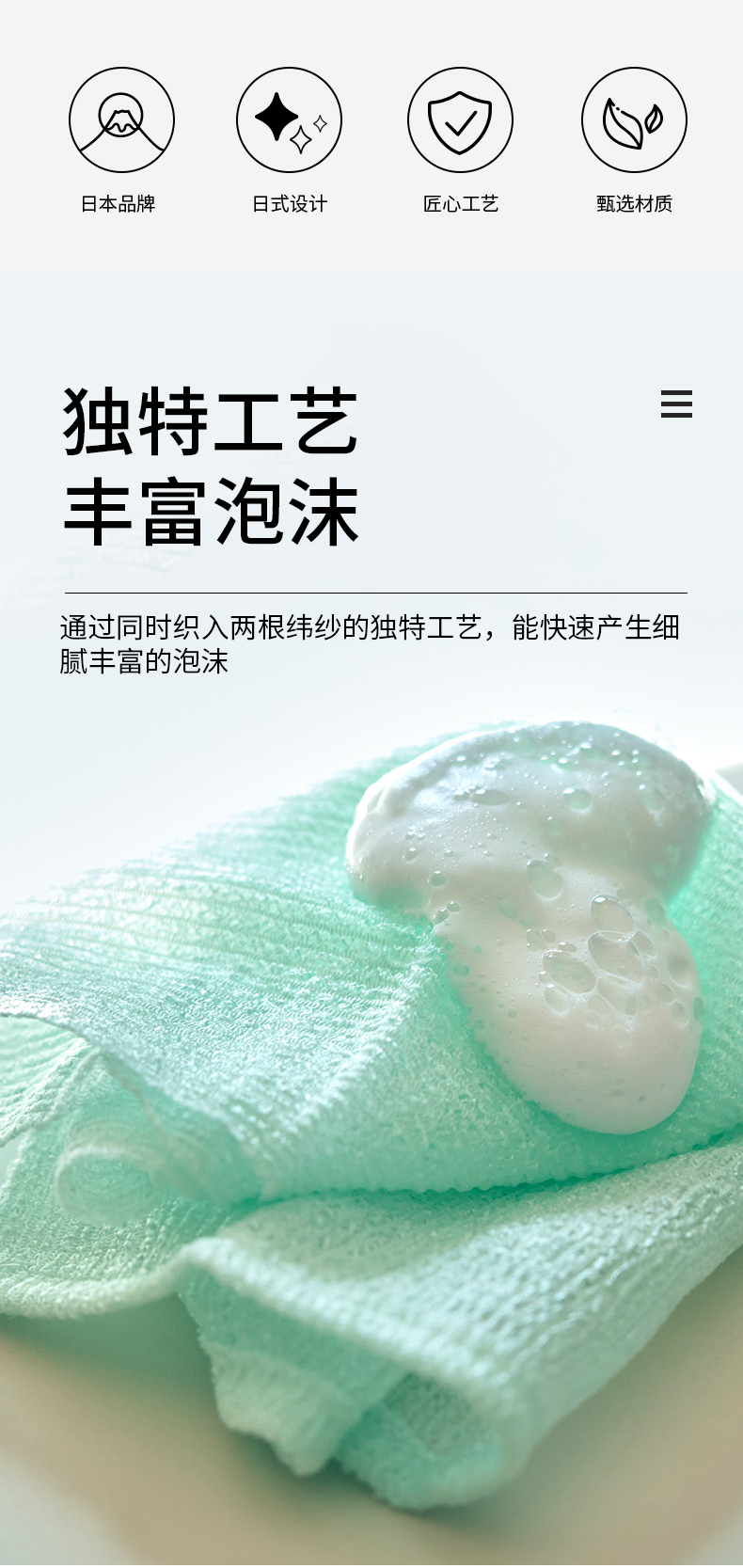 柔滑细腻泡沫系列洗澡巾极致软型