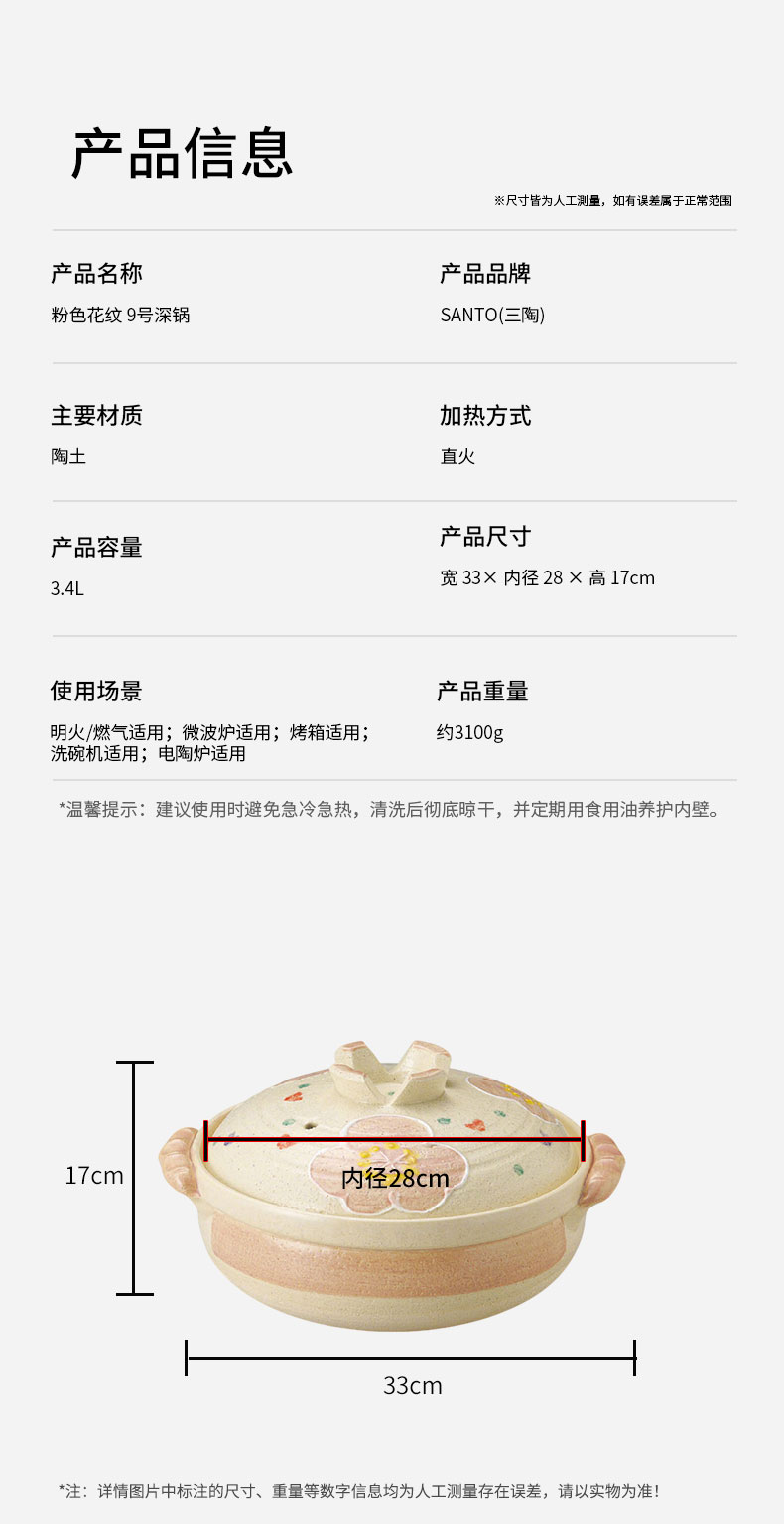 粉色花纹 9号深锅 3.4L 28cm×H11cm