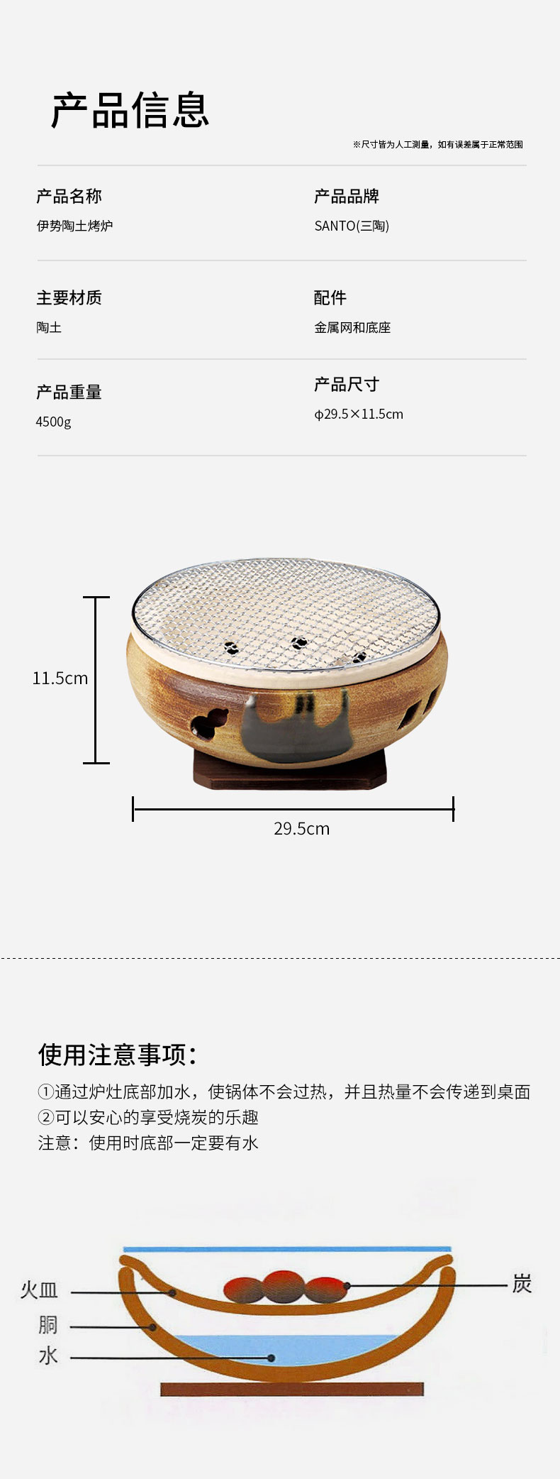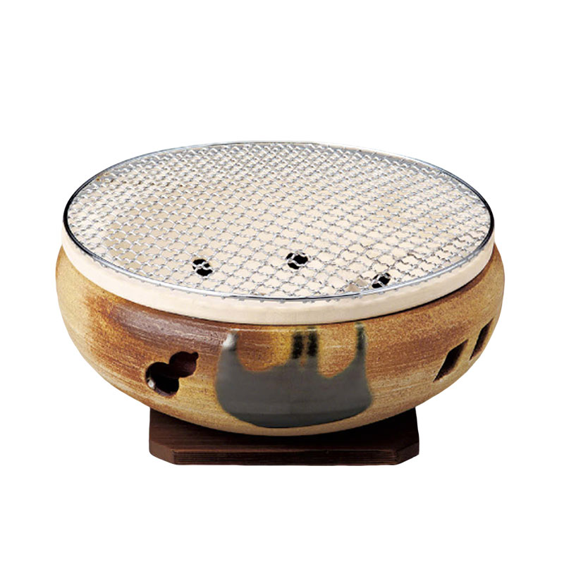 伊势陶土烤炉 10号 29.5cmx H11.5cm(附金属网和底座)