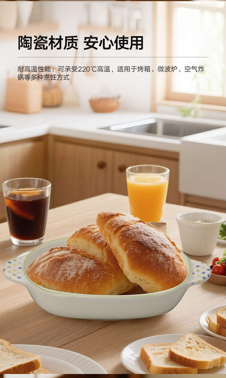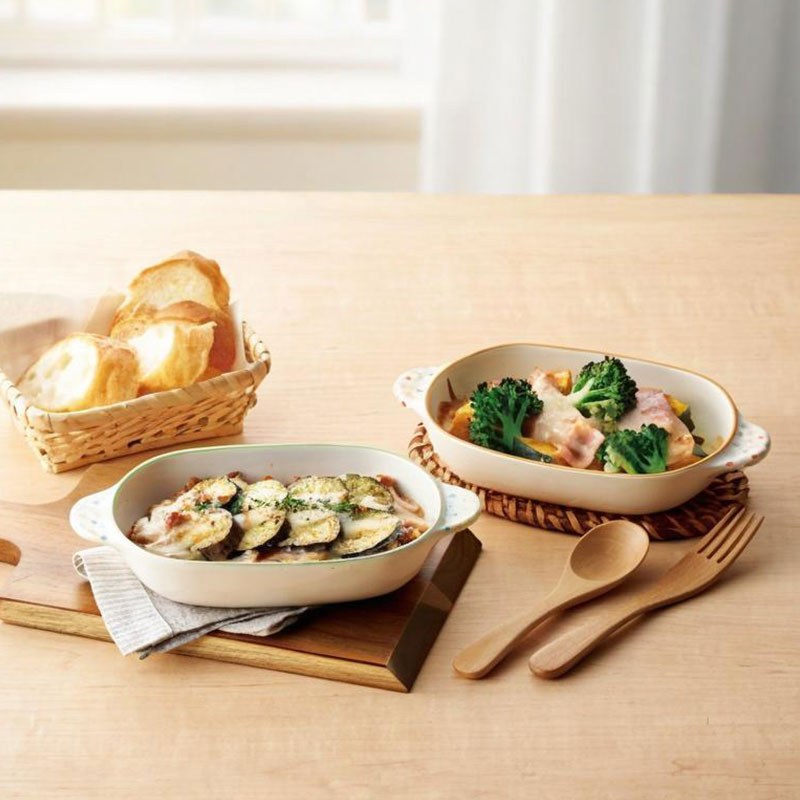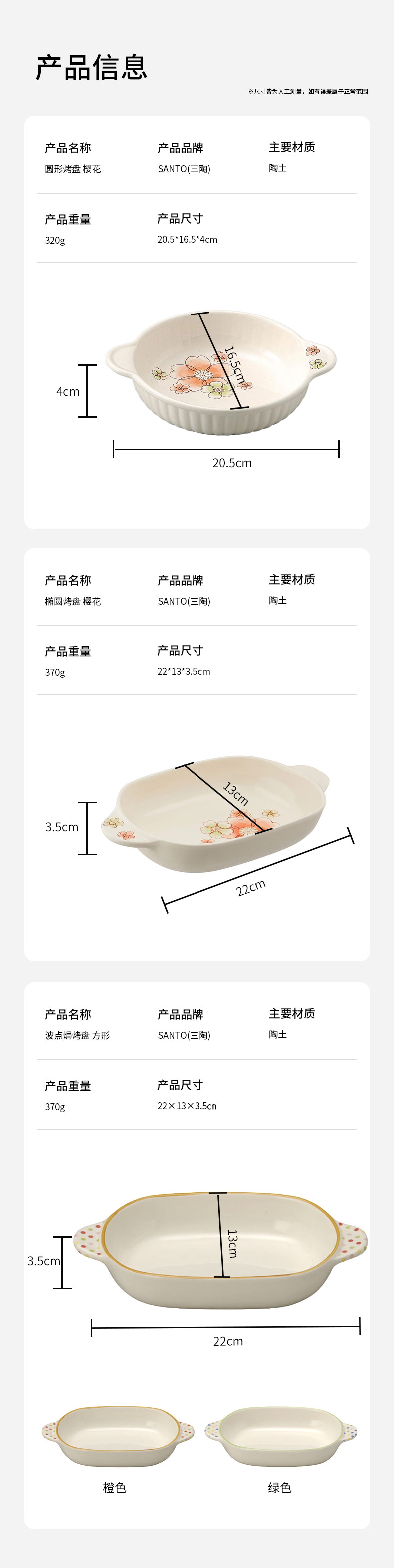 波点焗烤盘 橙色 方形 22×13×3.5㎝