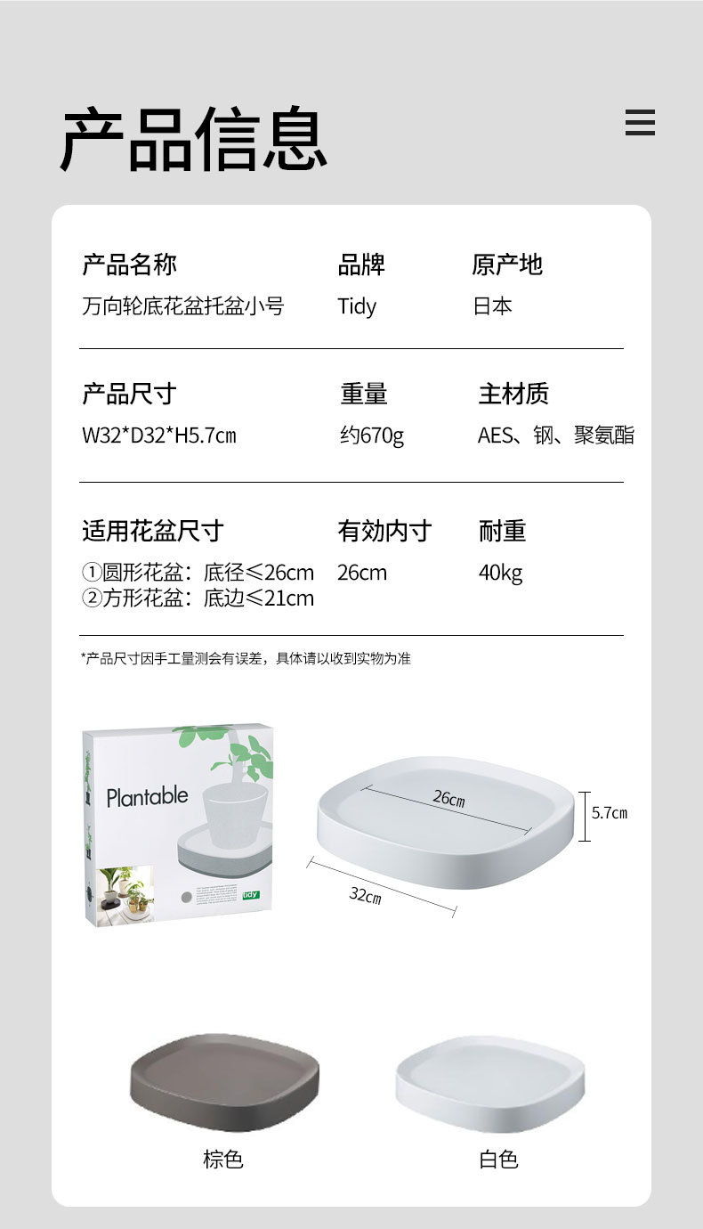 万向轮底花盆托盆小号白W32×D32×H5.7㎝