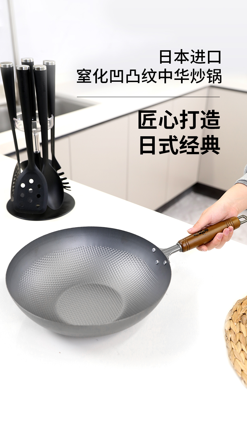 窒化凹凸纹中华炒锅 带把手 33cmx H9.5cm