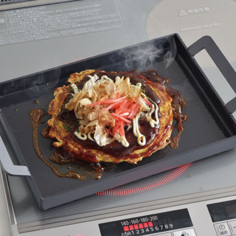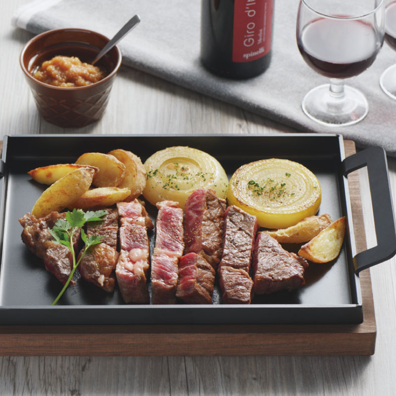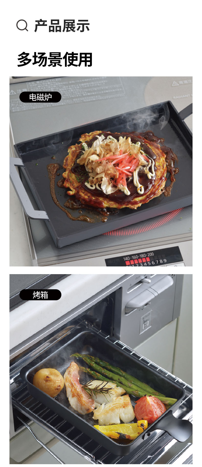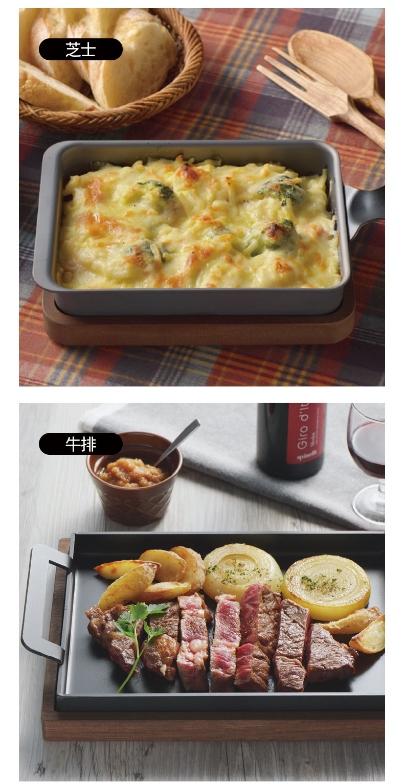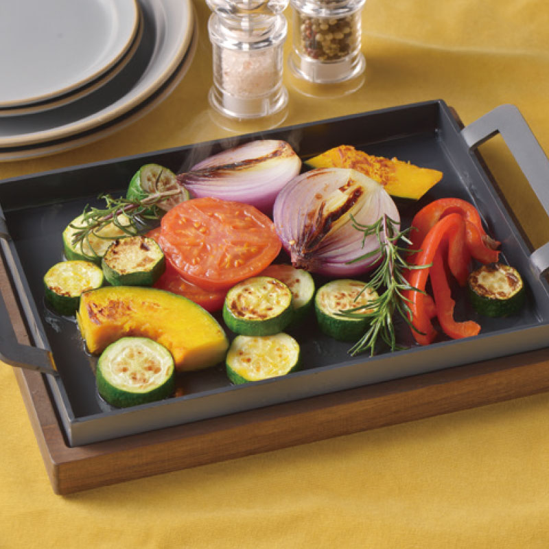 铸铁烧烤盘带木制托盘19cm×31.5cm×4.5cm