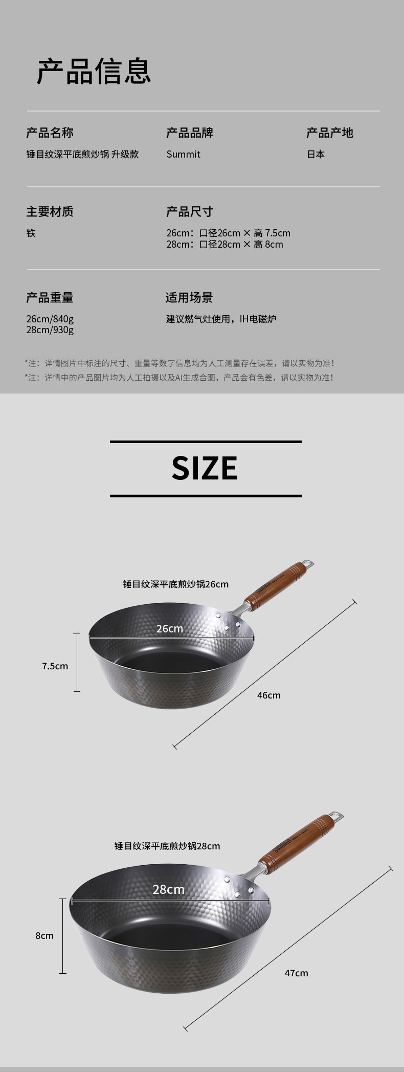 锤目纹深平底煎炒锅升级款 26cmx H7.5cm