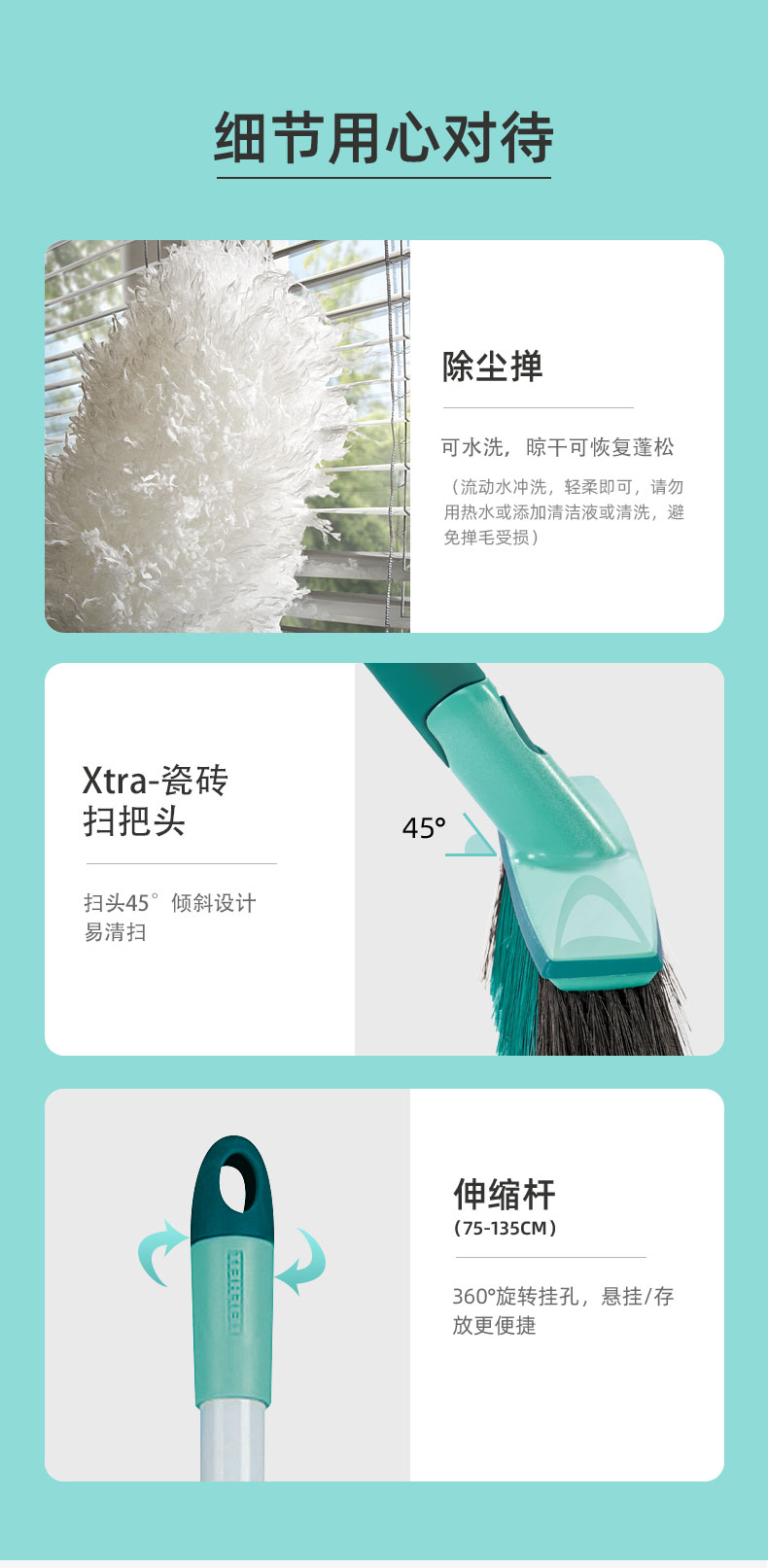 清洁套装(除尘+地板清扫+伸缩杆)
