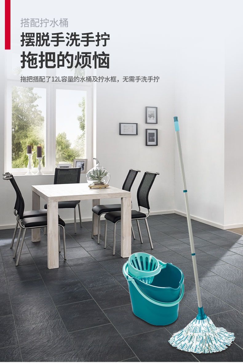 经典款超强吸力拧水拖把桶套装(粘胶纤维)