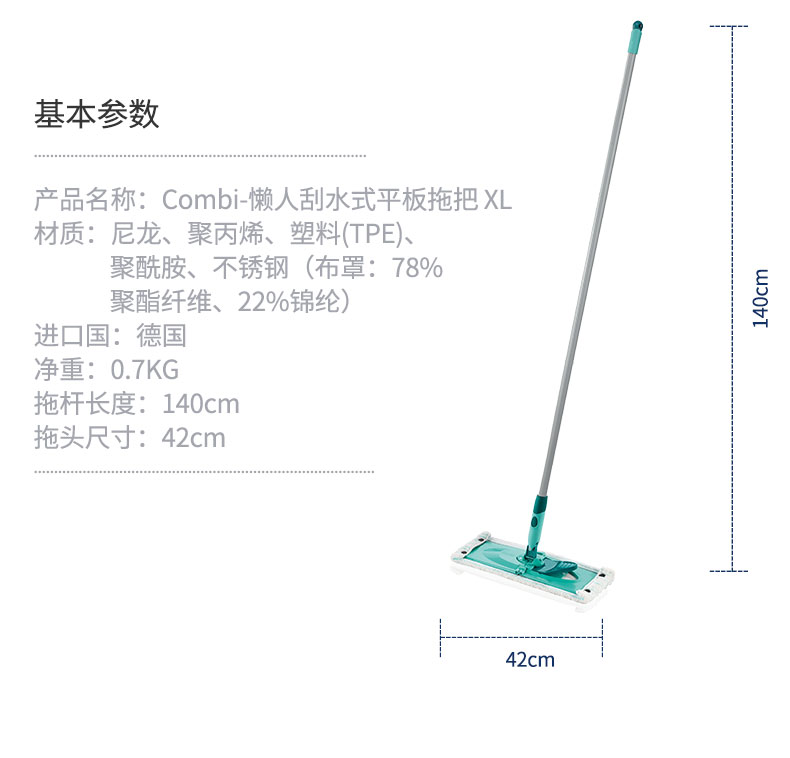 Combi-懒人刮水式平板拖把 XL(42cm,直杆,适用所有地板,按扣款)