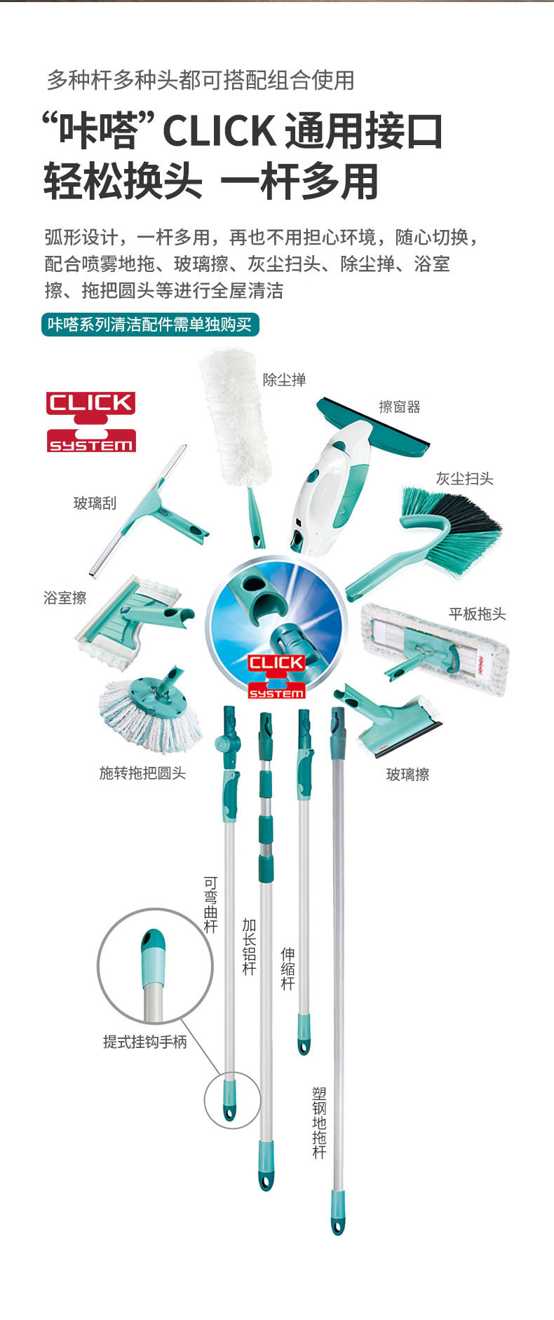 基础款伸缩杆平板拖把XL (42cm,咔哒接口)