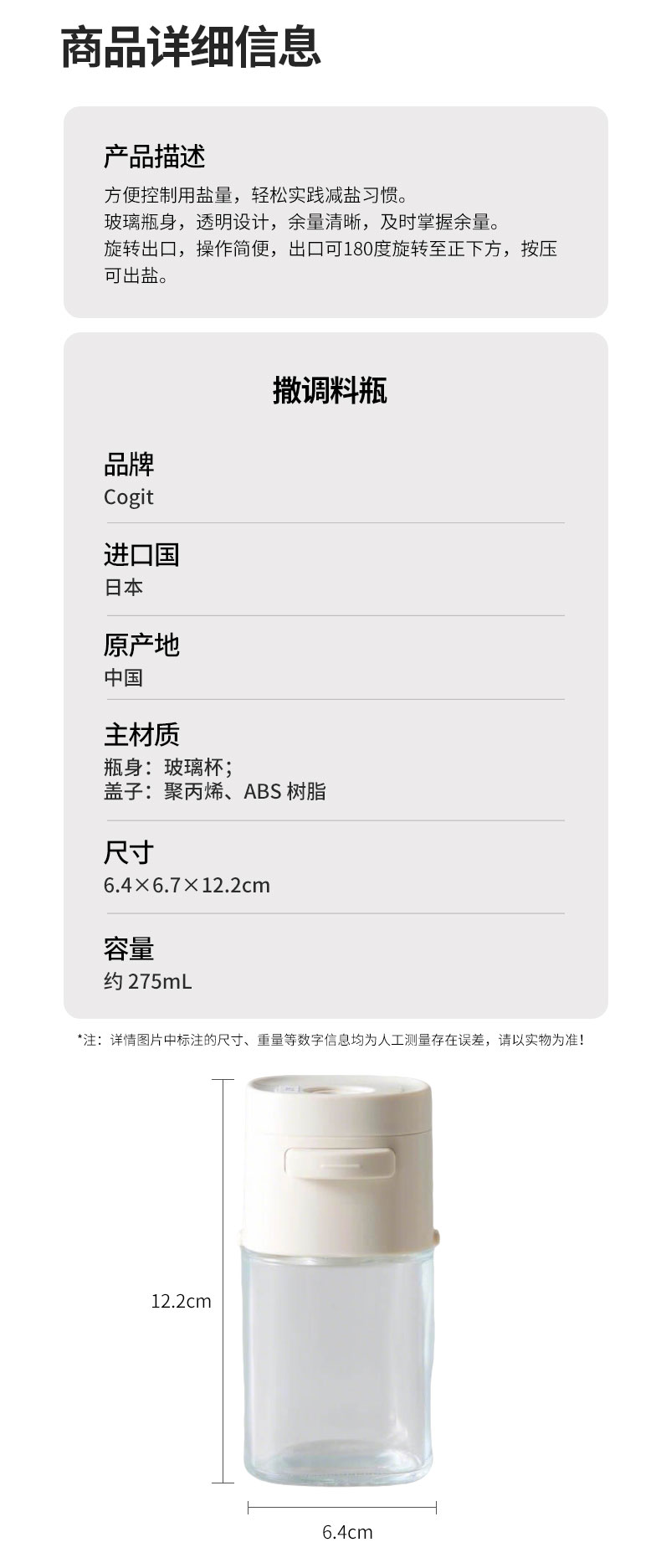 撒调料瓶 275mL 6.4×6.7×12.2cm