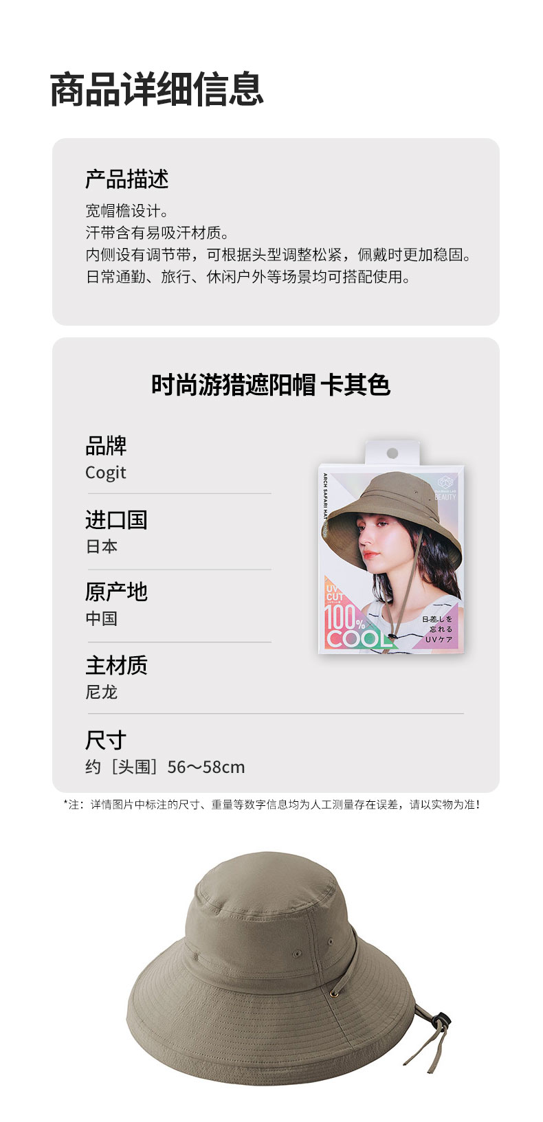 时尚游猎遮阳帽 卡其色