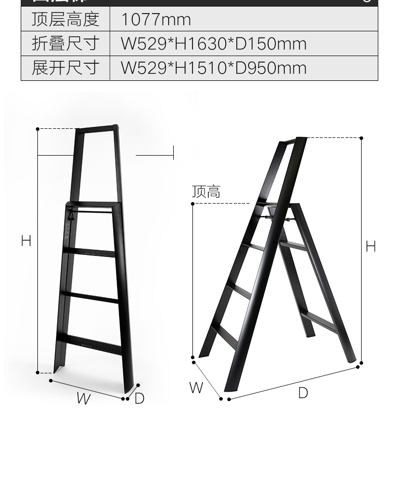 双扶手四层梯子 黑