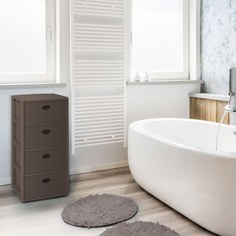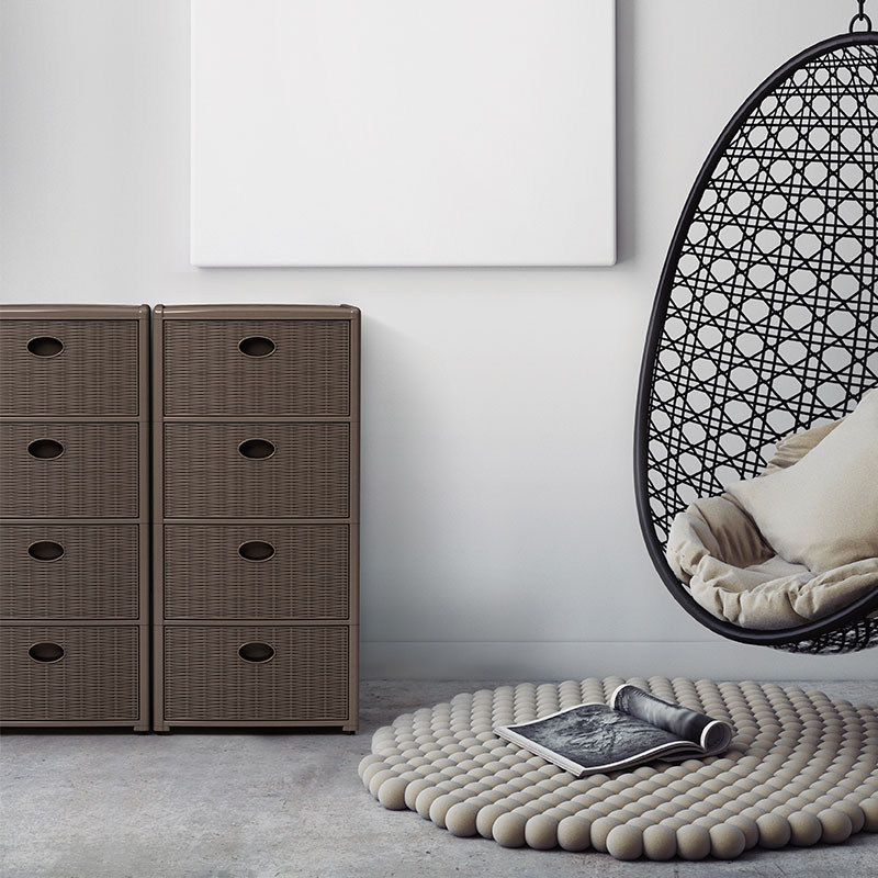 藤编整体收纳柜 四层 浅棕色