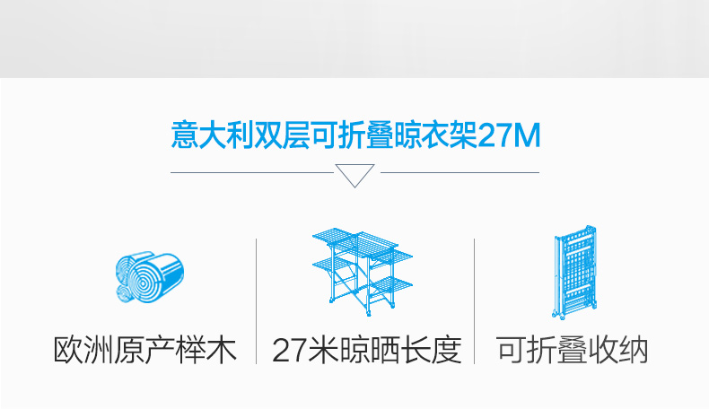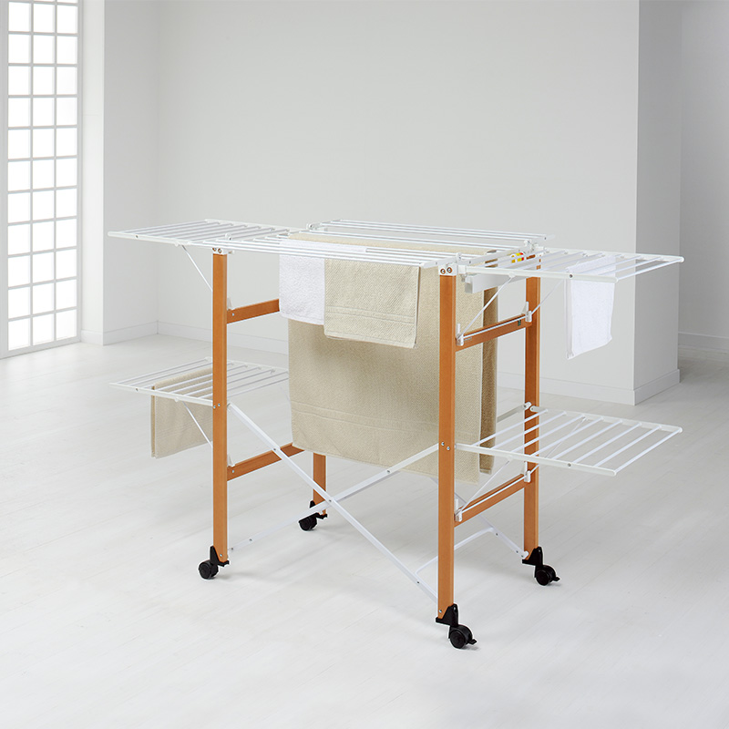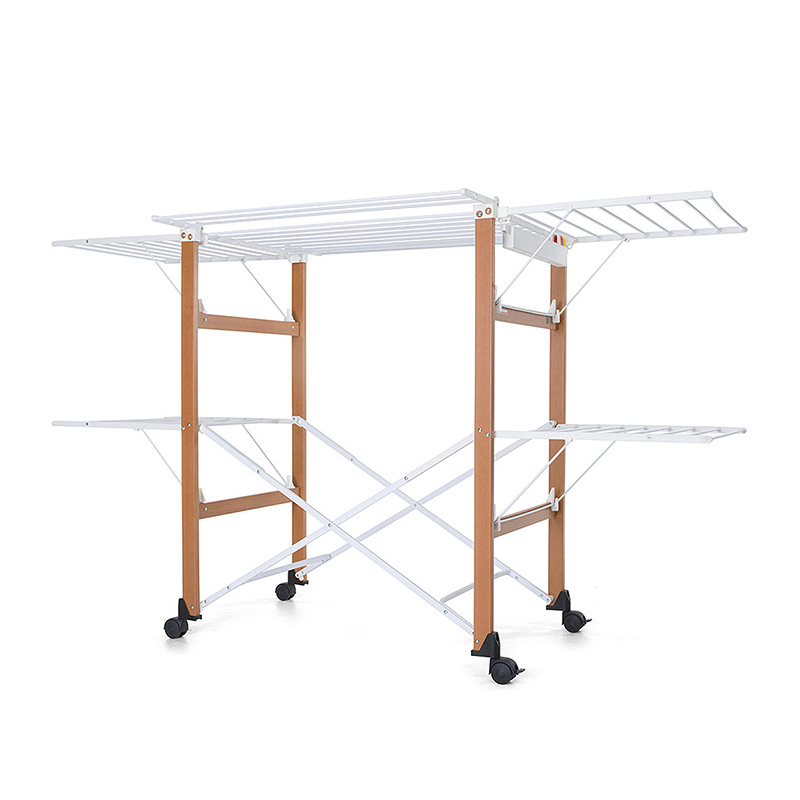 双层可折叠木质晾衣架 27M 配6个小夹子