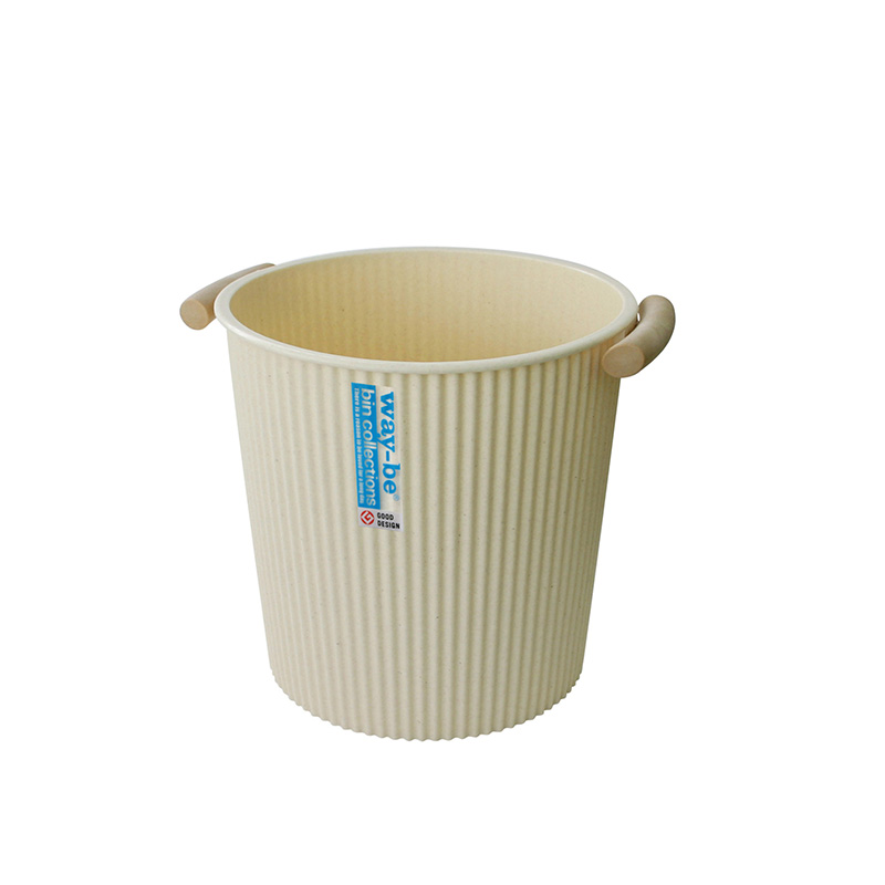 把手条纹垃圾桶 9L 米色