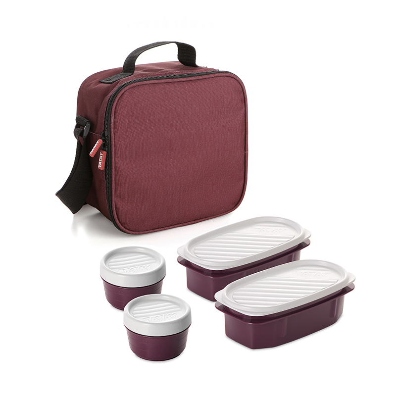 时尚保温防水餐包套装 含4个密封盒 酒红色